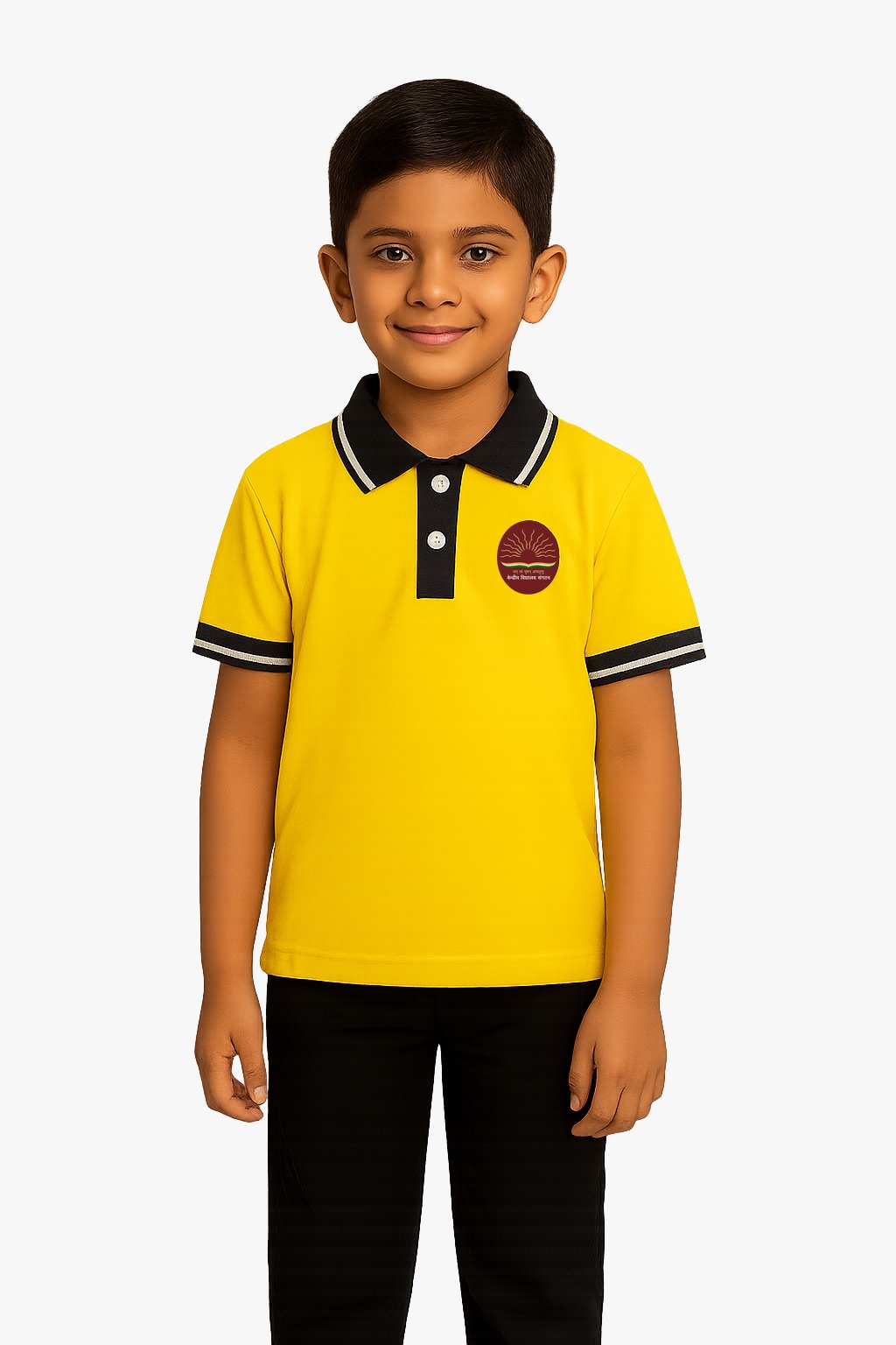 Polo round neck collar T-Shirt with ready rib on collar & sleeve opening. Front close with two button placket. Front with embroidery logo